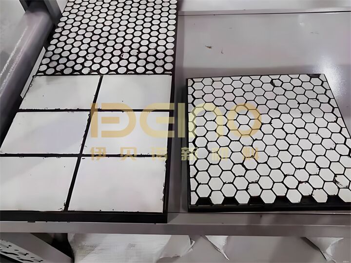 A5:Ya, ini adalah salah satu kekuatan aplikasi utama dari produk kami. The permukaan karet yang sangat elastis menawarkan sifat hidrofobik dan tidak lengket yang sangat baik. Saat material terkena benturan, deformasi elastis karet membantu untuk "memantul" material, mencegah pelekatan dan penumpukan. Ubin keramik yang menonjol menciptakan "kerangka" yang ditinggikan, yang selanjutnya mengurangi area kontak antara material lengket dan matriks karet, secara efektif memecahkan masalah penyumbatan dengan material basah dan lengket.